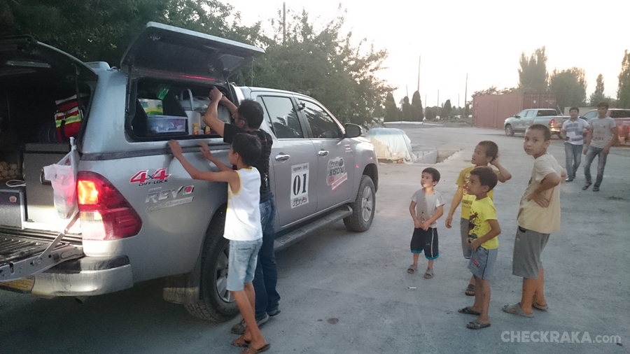 เรามีเวลา 2 วันที่เมืองนี้ทำให้ไม่ต้องรับแพคกระเป๋าเหมือนทุกเช้า เหตุผลก็เพราะต้องพักรถเซอร์วิสตรวจเช็คซ่อมบำรุงหลังขับกันมาหลายพันกิโลเมตร เส้นทางและสภาพอากาศก็จัดว่าร้อนระอุตลอด รถได้พักซ่อมบำรุง คนก็เช่นกันหลังขับรถทางไกลทุกวันพักแค่นอนแล้วตื่นมาขับต่อ ก็ถือโอกาสเดินพักผ่อนกันหน่อย สมาชิกฯ แยกย้านท่องเมืองคัชการ์ในหลากหลายมุมเท่าที่เวลาจะเอื้ออำนวย ตกเย็นหลังทานอาหารที่โรงแรมก็พอมีเวลาเดินดูวิถึชีวิตคนเมืองนี้ยามค่ำ นับว่าน่าสนใจและแตกต่างจากเมืองที่ผ่านมา ภารกิจวันรุ่งขึ้นนับเป็นความตื่นเต้นเพราะเป็นการขับรถข้ามพรมแดนระหว่างประเทศครั้งแรกของกลุ่มนี้เพื่อต่อไปยังประเทศคีร์กีซสถาน !
