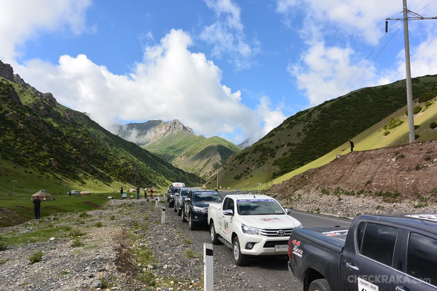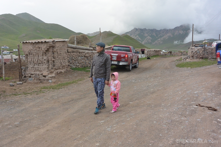 เราเดินทางไปชายแดน จีน - คีร์กีซสถานแต่เช้า เพื่อให้เวลากับขั้นตอนการตรวจคนเข้าเมือง ซึ่งไม่ง่ายเหมือนการบินข้ามประเทศ โดยเฉพาะการขับรถผ่านในจุดที่ไม่ใช่เมืองใหญ่ ยิ่งไปกว่านั้นเป็นขบวนฯ ของคนไทยซึ่งไม่ได้เกี่ยวกับทั้ง 2 ประเทศตรงนั้นเลย จึงต้องใช้เวลามากพอควร การเผชิญกับคำถามจากทหารตรงชายแดนไม่ใช่เรื่องน่าสบายใจเท่าไหร่ แต่ทุกอย่างก็ผ่านไปด้วยดี ความรู้สึกเริ่มเปลี่ยนจากอากาศที่เรี่มเย็นลง ภาพด้านหน้าค่อยๆ เปลี่ยนจากที่มักเป็นภูเขาหิน เริ่มมีต้นไม้ใบหญ้าสีเขียวมากขึ้น พอข้ามมาแล้วเราเห็นแนวเขาไกลๆ ยังโดนหิมะปกคลุมอยู่ พื้นที่ส่วนใหญ่ของซารี แทชอยู่เหนือระดับน้ำทะเลราว 3 พันกว่าฟุต ภาพแรกคีย์กีซสถานนับเป็นธรรมชาติที่สงบ ดูเรียบง่าย และมีสเน่ห์ดึงดูดอย่างแปลกประหลาด ขบวนโตโยต้า ไฮลักซ์ รีโว่ ขับกันแบบไม่สนความเร็วเพราะโดดดึงดูดด้วยความสวยงามและความเย็นของอากาศ เหมือนเข้าสู่อีกโลก โดยได้แวะถ่ายรูปและออกไปสัมผัสบรรยากาศสักพัก ก่อนเคลื่อนขบวนฯเข้าหมู่บ้านข้างหน้าเพื่อพักกันที่โฮมสเตย์ นอกเหนือไปจากธรรมชาติ และทิวทัศน์ที่เหมือนฟ้าต่ำของที่นี่ เรายังพบว่าในบ้านพักไม่มีทีวี สัญญาณโทรศัพท์ อินเทอร์เน็ต น้ำประปา ใช้การตักน้ำมาลงถังให้ หลายคนอาศัยผ้าเปียกเช็ดตัวกันไป ไม่ก็ไม้อาบเพราะอากาศเย็นมาก ห้องน้ำสำหรับบรรเทาทุกข์ อยู่แยกออกไปจากบ้าน บนเนินหญ้าด้านหลัง ใครอยากเข้าตอนดึกก็ต้องมีไฟไปและอาศัยความกล้าด้วย แน่นอนว่าระบบส้วมยังไม่ต่างจากทางฝั่งจีนคือ เป็นส้วมหลุมทิ้งลงด้านล่าง ทำให้เรากลับมาใช้ชีวิตเหมือนในยุคเก่า มีโอกาสนั่งล้อมวงกินข้าว พูดคุยพร้อมหน้าแบบไม่แตะสมาร์ทโฟนกันเลย ในช่วงดึกอุณหภูมิภายนอกลดลงมาจนแตะ 1 องศา หลายคนออกมาสัมผัสความเย็นที่ต่างกันสุดขั้วกับช่วง 2-3 วันที่ผ่านมา เรานอนกันแบบแง้มหน้าต่างไว้นิด เป็นค่ำคืนที่หลับได้อย่างมีความสุขและไม่เหมือนครั้งไหนในชีวิตเพราะเป็นห้องนอนรวม ชาร์จพลังก่อนขับรีโว่มุ่งสู่เมืองออชต่อ