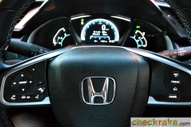สรุป ฮอนด้า ซีวิค ใหม่ สร้างความแตกต่างจากคู่แข่งในตลาดด้วยการออกแบบรูปทรงที่ล้ำสมัยและสวยงาม จนทำให้บางรุ่นดูล้าสมัยไปเลย ไม่เพียงแค่ภายนอก ภายในห้องโดยสารก็ออกแบบได้อลังการ สวยงามเช่นกัน และใช้วัสดุคุณภาพดี และนิ่มเสริมในหลายจุดสัมผัส ผู้เขียนชอบตรงการออกแบบค็อกพิตรอบตัวผู้ขับ รวมถึงการวางตำแหน่งเบาะให้ต่ำ ปรับง่ายและควบคุมได้ถนัดมือ ด้านสมรรถนะเครื่องยนต์ 1.8 ลิตร 141 แรงม้า นับว่าเพียงพอต่อการใช้งานทั่วไป เพียงแต่อัตราสิ้นเปลืองผิดคาดไปบ้าง การบังคับควบคุมรถโดยรวมนับว่าดีและน่าพอใจมาก ด้วยราคา 959,000 บาท ในรุ่น 1.8EL แลกกับซีดานขนาดกลางรุ่นดังของฮอนด้า ที่มีความสดใหม่ ล้ำสมัย ก็นับว่าน่าสนใจไม่น้อย แต่ถ้าคาดหวังอารมณ์การขับแบบสปอร์ตเหมือนลุคที่เห็นอาจไม่ได้ดั่งใจนัก แม้เป็นรุ่น 1.5 เทอร์โบ ก็ไม่ใช่เครื่องยนต์ที่ตอบโจทย์ขาซิ่ง หรือคนรักความแรง จริงๆ ซีวิค ใหม่ เป็นซีดานที่เน้นการใช้งานแบบรอบด้านได้ดีมากรุ่นหนึ่ง