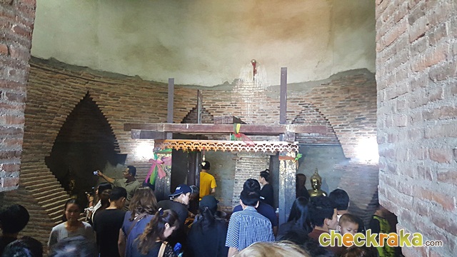 ด้านในเจดีย์ จะมีหลุมลึกอยู่ เป็นจุดที่คนนิยมโยนเหรียญลงไปให้ตกลงในบ่อด้านล่าง