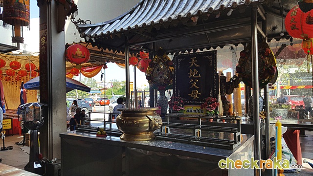 องค์จำลองด้านหน้าโบสถ์ จุดธูปเทียนสักการะได้ที่บริเวณนี้