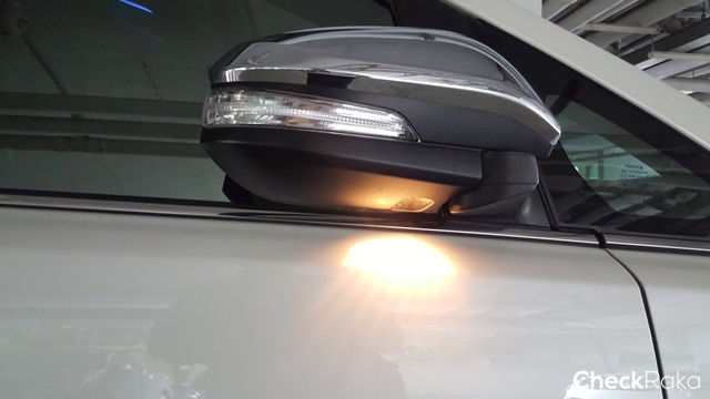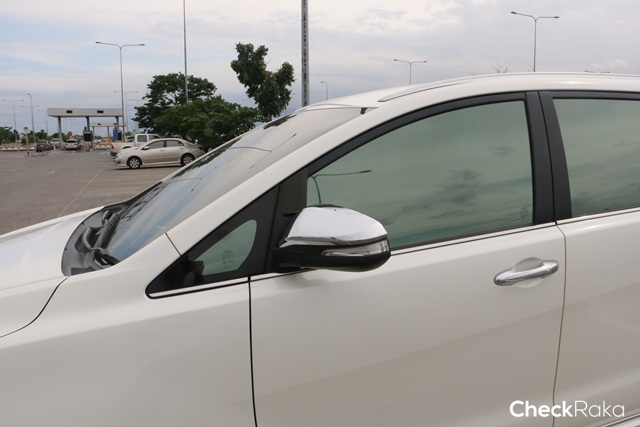 กระจกมองข้างพร้อมไฟเลี้ยว และไฟส่องพื้นตกแต่งด้วยฝาครอบโครเมียม จอดส่องในเวลากลางคืนได้ดี ด้านข้างโดดเด่นด้วยกระจกบานหลังสุดบริเวณเสาหลัง "D-Pillar" และมือจับประตูโครเมียมเช่นกัน