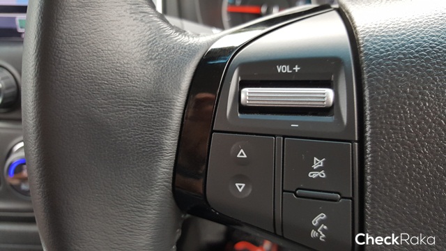 พวงมาลัยมัลติฟังก์ชั่นหุ้มหนังแท้ปรับระดับขึ้น-ลงได้ สะดวกสบายทั้งปุ่มควบคุมเครื่องเสียง รับ-วางสายโทรศัพท์ กดเลือกเมนูแสดงผลบนมาตรวัด สามารถดูรายละเอียด ทั้งทริประยะทาง A/B, ความดันลมยาง, ระยะทางที่วิ่งได้จากน้ำมันในถัง