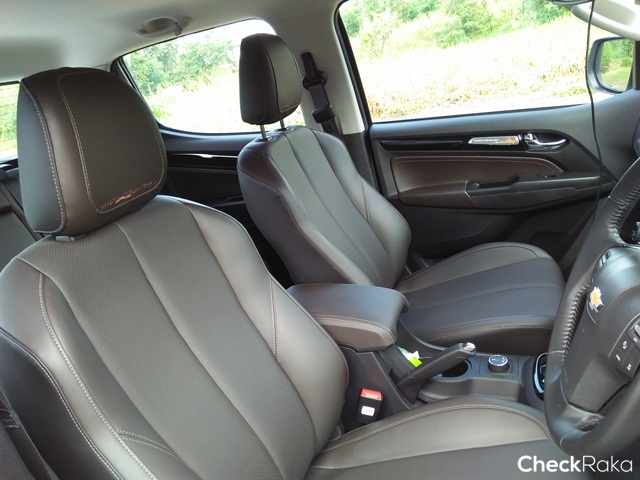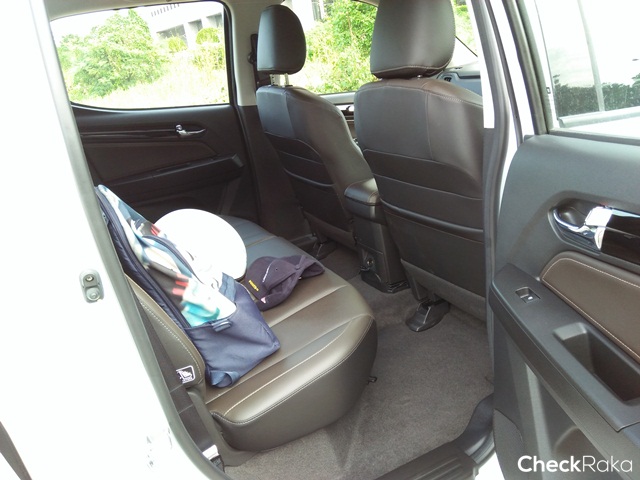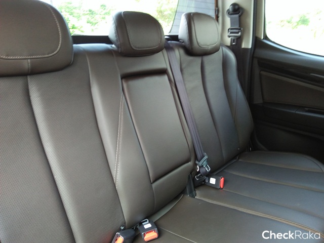 เบาะคู่หน้าคนขับปรับไฟฟ้าขนาดใหญ่สไตล์กระบะนั่งสบาย ที่เท้าแขนระดับกำลังพอดี ส่วนเบาะหลังใหญ่โตและมีพื้นที่กว้างขวาง สามารถยกเบาะขึ้นใส่ของในกล่องใต้เบาะได้ด้วย