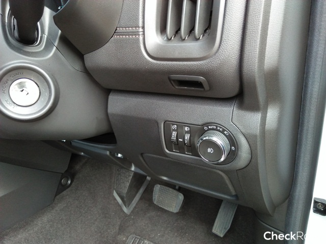 ฝั่งขวาสุดมีสวิตช์ควบคุมระบบไฟหน้าอัตโนมัติ, ปรับความสว่างมาตรวัดและปุ่มปรับระดับไฟหน้า ที่น่าเสียดายคือไม่มีปุ่มสตาร์ตเครื่องยนต์มาให้ แต่ว่ากลับได้ระบบสั่งสตาร์ตด้วยรีโมทมาแทน