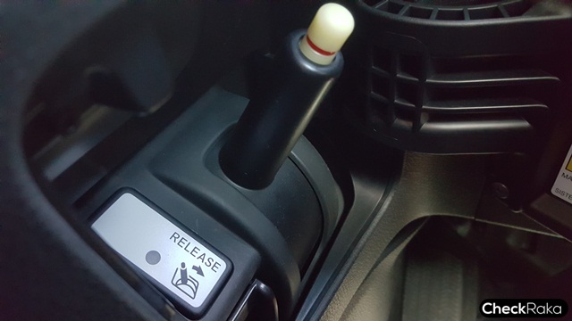 แม้ไม่มีคันเกียร์ก็ไม่ต้องห่วงเรื่องจอดขวางรถคันอื่น เพราะสามารถเปิดฝาด้านข้างหัวเข่าคนขับและปลดคันโยกลงมาเพื่อใส่เกียร์ว่างสำหรับเข็นได้ ปลอดภัยสำหรับรถคุณในกรณีจำเป็นต้องจอดลักษณะขวาง สรุปขั้นตอนง่ายๆ คือ 1) เปิดฝาครอบ 2) กดปุ่ม Release 3) กดปุ่มปลายคันโยกและดันลง ส่วนการปลดคืนก็แค่กดปุ่มปลายคันโยกเท่านั้น ก็จะเด้งกลับที่เดิม