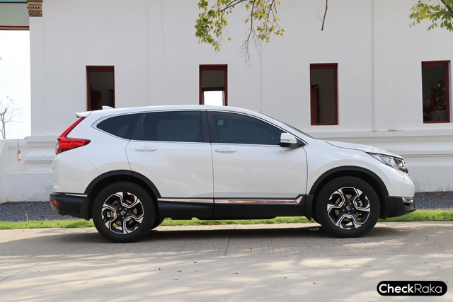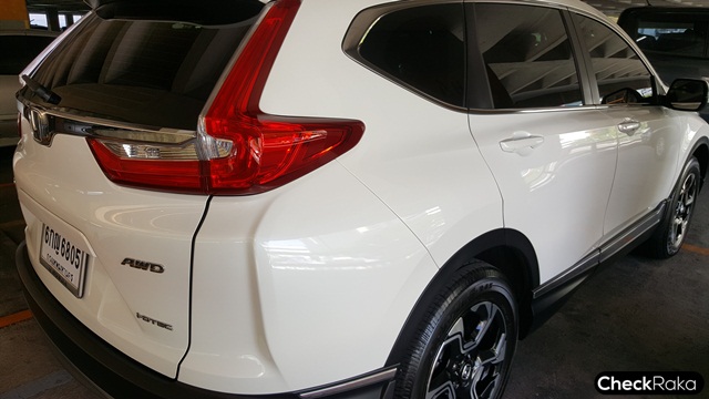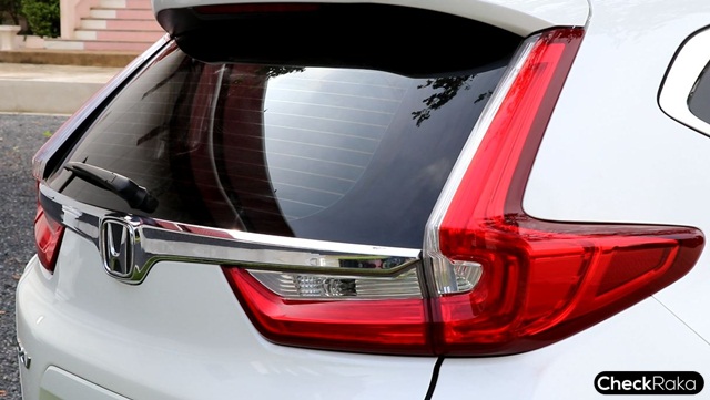 ทางด้านข้างส่วนหลังคายังคงรูปทรงคล้ายรุ่นก่อนหน้า ส่วนหัวและท้ายใหม่หมด ฝากระโปรงท้าย ติดตัวอักษรบ่งบอกรุ่น CR-V i-DEC และ AWD กันชนด้านล่างสีดำตัดกับสีเงิน เปิด-ปิดด้วยระบบไฟฟ้า และล้อแม็ก 6 ก้านขนาด 18 นิ้ว