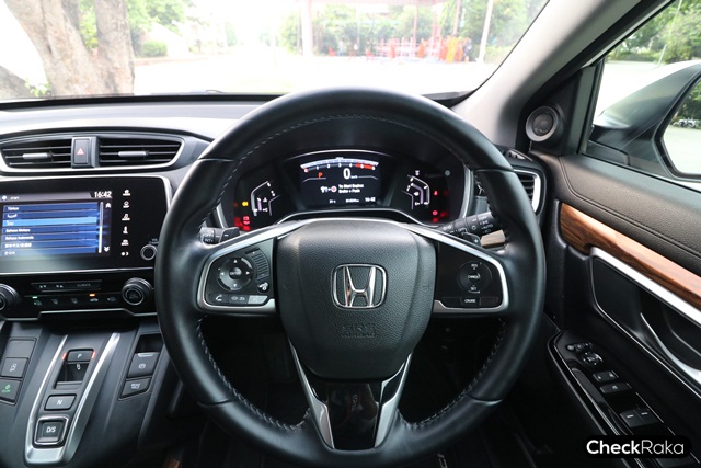 ฮอนด้า ซีอาร์-วี (Honda CR-V) ให้ความรู้สึกราวกับรถยุโรป ด้วยความแน่นหนึบของช่วงล่าง ระบบเบรกที่นุ่มเท้าและไม่ต้องออกแรงมากนัก ช่วยให้ขับขี่ง่าย น้ำหนักพวงมาลัยเบาที่ความเร็วต่ำ และหนืดขึ้นเมื่อความเร็วสูงๆ และควบคุมได้เฉียบคม หมุนพวงมาลัยไม่มากนัก รถก็เลี้ยวได้วงแคบมากๆ คล่องตัวมากกว่าที่คิดไว้