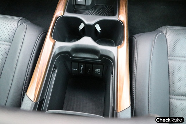 ตรงคอนโซลกลางมีช่องเสียบทั้ง USB HDMI และ DC12V สะดวกต่อการใช้งาน และมีถาดวางของที่สามารถเลื่อนเปิด-ปิดได้