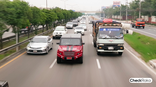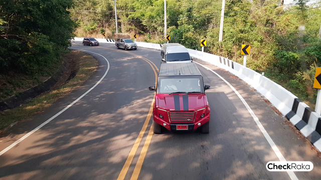 เรามาเริ่มกันที่ช่วงแรกกับการทดลองขับในเมืองกันก่อน อย่างที่เห็นว่าตัวรถนั้นมีขนาดค่อนข้างใหญ่ตามแบบรถอเนกประสงค์ ตอนได้สัมผัสรถใหม่ๆ มีบ้างที่ต้องปรับตัวให้เข้ากับตัวรถเพื่อให้เกิดความเคยชิน กับจังหวะการเลี้ยว การกะระยะทั้งด้านหน้า และหลัง ซึ่งด้วยขนาดตัวถังแล้วก็ต้องบอกว่ากับสภาพรถติดๆ ในเมืองนั้นไม่ค่อยจะคล่องตัวเท่าไหร่เมื่อเทียบกับรถเล็กกว่า แต่ก็ได้ทัศนวิสัยที่ช่วยให้มองเห็นได้ชัดเจนกว่ารถเตี้ยๆ และด้วยดีไซน์ที่โดดเด่นนี่เองทำให้เวลาจะเปลี่ยนช่องจราจรก็มักจะมีคนเปิดช่องให้เข้าไม่แน่ใจว่าเพราะมัวแต่ดูรถ หรือว่ากลัวไม่คุ้มถ้าเกิดการเฉี่ยวชนขึ้นมา กับการขับขี่ในเมือง พละกำลังจากเครื่องยนต์ 2.8 ลิตร เทอร์โบ นั้นตอบสนองได้อย่างเพียงพอ ถึงแม้จะต้องแบกรับน้ำหนักตัวถังที่เพิ่มเติมก็ไม่ได้ลดทอนประสิทธิภาพของเครื่องยนต์ให้ด้อยลงไปเลย