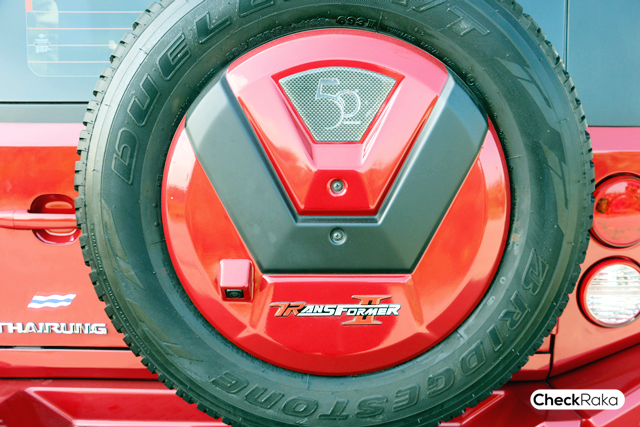 กล้องมองหลังติดตั้งอยู่บริเวณฝาครอบยางอะไหล่ สีเดียวกับตัวรถพร้อมโลโก้รุ่นพิเศษ 50 ปี