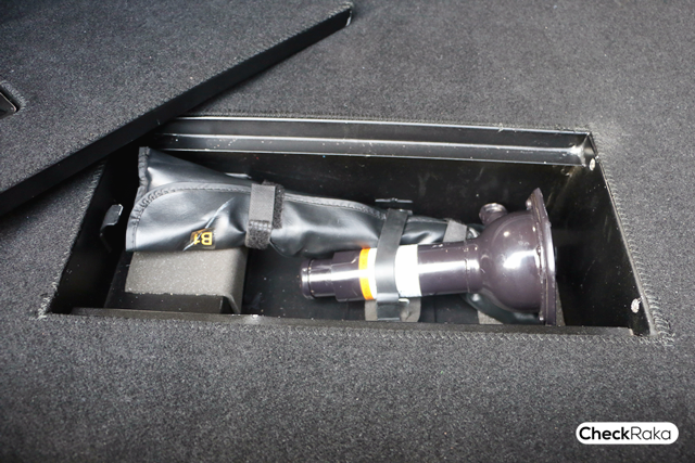 ชุดเครื่องมือเบื้องต้น และแม่แรง เก็บไว้ในช่องเก็บอุปกรณ์บริเวณพื้นรถด้านหลัง