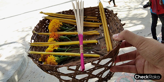 ชุดธูปเทียนเพื่อบูชา แบบไหว้ขอพรธรรดา แต่หากจะบนบานจะมีอีกชุดใหญ่อีกแบบหนึ่ง