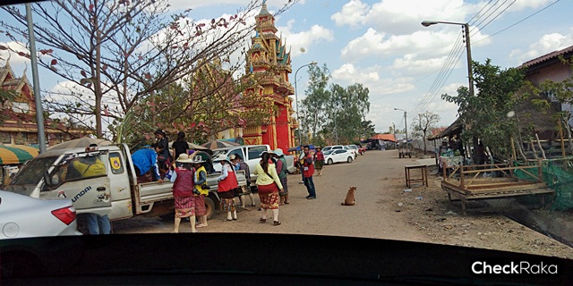 ถึงฝั่งชายแดนลาวแล้ว และเราก็ต้องจ้างรถท้องถิ่นในการพาไปพระธาตุโพนด้วยราคา 1,800 บาท (ต่อรองราคาได้นะครับ)