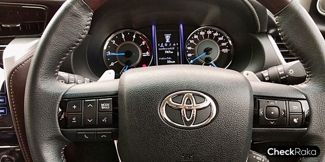 Toyota Fortuner รุ่นเครื่องยนต์ดีเซล 4 สูบ 16 วาล์ว DOHC VN Turbo Intercooler ขนาด 2,393 ซีซี กำลังสูงสุด 150 แรงม้า ที่ 3,400 รอบต่อนาที แรงบิดสูงสุด 400 นิวตันเมตร ที่ 1,600-2,000 รอบต่อนาที เกียร์อัตโนมัติ 6 จังหวะ พร้อม Sequential Shift และ Paddle Shift พร้อมระบบขับเคลื่อน 4 ล้อ ซิกมาร์โฟร์ ปรับรูปแบบการขับเคลื่อนได้ 3 แบบ คือ 2H, 4H และ 4L ถังน้ำมันจุได้ 80 ลิตร ช่วงล่างด้านหน้าแบบอิสระปีกนกคู่ พร้อมคอยล์สปริง และเหล็กกันโคลง ด้านหลังแบบโฟร์ลิงค์คอยล์สปริง และเหล็กกันโคลง พร้อมดิสก์เบรก 4 ล้อ (แล้วนะจ๊ะ) แต่พวงมาลัยพาวเวอร์ยังใช้ระบบไฮดรอลิกอยู่