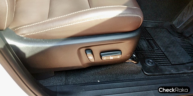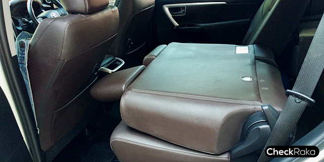 เบาะคู่หน้าปรับไฟฟ้า เบาะตอนที่สอง ปรับและพับอเนกประสงค์แบบ 60:40 ส่วนเบาะแถวสามพับแบบเก็บขึ้นด้านข้างที่บางคนก็แอบบ่นว่าเกะกะบังมุมกระจกมองหลัง แต่บางคนก็บอกว่าวางของได้สะดวกดีเพราะพื้นเรียบ ส่วนในทริปที่ได้ลองสัมผัสเอง รู้สึกว่าเบาะหลังก็ไม่ได้เกะกะมากนัก และมีผลในการมองกระจกมองหลังน้อยมากๆ แต่ว่าการพับเก็บขึ้นและการกางเอาลงนั้นจะลำบากกว่าชาวบ้านเขานิดหน่อยครับ ต้องใช้แรงเยอะนิดนึง และก็มีเสียงของเบาะดังบางจังหวะที่ตกหลุมแรงๆ หรือผ่านถนนที่สะเทือนมากๆ