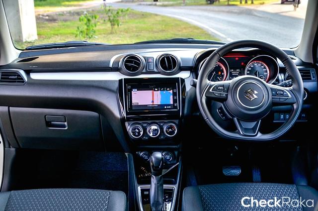 ภายในของ ซูซูกิ สวิฟท์ 2018 (All New Suzuki SWIFT) ออกแบบใหม่ ให้ความรู้สึกสปอร์ตและทันสมัย การออกแบบวางตำแหน่งปุ่มและอุปกรณ์ต่างๆ อยู่ในตำแหน่งที่ใช้งานง่าย สะดวก อ่านค่าง่าย พวงมาลัยมัลติฟังก์ชันก็ทรงสามก้านนอก วางโลโก้ซูซูกิเด่นชัดตรงกลาง สวยและใช้งานง่าย คันเกียร์ออโต้ทรงสปอร์ตจับใช้เปลี่ยนเกียร์ง่าย ดูกลมกลืนกับธีมภายในห้องโดยสาร เบาะใช้วัสดุผ้าสองลายทรงสอดรับโอบกระชับท่านั่ง หมอนรองศีรษะทำทรงสูงบางเพื่อให้เบาะดูสปอร์ตจริงๆ ด้านท้ายนั่งสบายพอสำหรับผู้ใหญ่สองคน และห้องสัมภาระก็มีพื้นที่ใช้สอยมากพอเก็บจักรยานพับล้อ 20 นิ้วได้