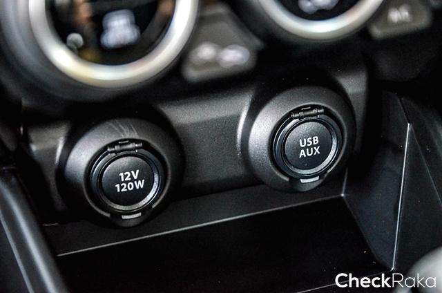ช่องจ่ายไฟสำรองและเชื่อมต่อออกแบบดูเรียบร้อยมิดชิด วางตำแหน่งอยู่ใต้คอนโซลหน้า