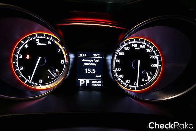มาตรวัดสไตล์สปอร์ต ตัดขอบด้วยแสงสีแดง ส่วนจอแสดงข้อมูลการขับก็ชัดเจนอ่านง่าย