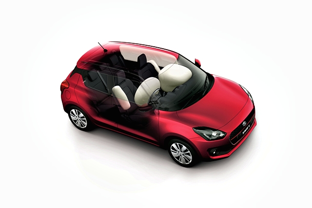 ความปลอดภัยในสวิฟท์ ใหม่ เริ่มจากแพลตฟอร์มใหม่ HEARTECT ที่ทำให้น้ำหนักรถลดลง แต่ยังแข็งแกร่งและประหยัดน้ำมัน ผสานกับโครงสร้างตัวถังแบบ TECT พร้อมระบบกันการสั่นสะเทือน พร้อมระบบช่วยเหลือต่างๆ ที่มีในรถระดับพรีเมียมเช่น ระบบป้องกันล้อหมุนฟรี-TCS ช่วยควบคุมรถขณะขับผ่านทางลื่นหรือโค้ง, ระบบช่วยออกตัวขณะอยู่บนทางลาดชัน- Hill Hold Control สบายใจได้แม้คุณเป็นมือใหม่, ระบบเบรก ABS ช่วยป้องกันไม่ให้ล้อล็อคขณะเบรกกะทันหัน ช่วยให้เบรกและหักหลบอุปสรรคได้ง่ายขึ้น พร้อมระบบกระจายแรงเบรก 4 ล้อ ABS และ EBD, ถุงลมนิรภัย SRS 6 ตำแหน่ง ช่วยรับแรงกระแทกเมื่อเกิดอุบัติเหตุ และระบบควบคุมเสถียรภาพการทรงตัว ESP ที่ช่วยไม่ให้เสียการควบคุมง่ายๆ เวลาเข้าโค้งด้วยความเร็วที่เกินการควบคุม