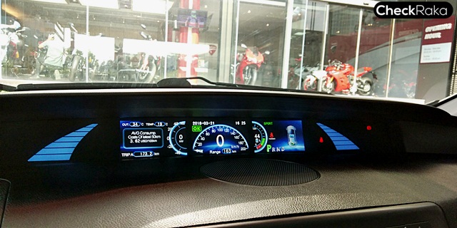 ภายในดูโปร่งโล่งสบายด้วยหลังคาที่สูง คอนโซลหน้าขนาดใหญ่มาตรวัดอยู่กึ่งกลาง บอกรายละเอียดเกี่ยวกับการทำงานของรถทุกอย่าง เช่น ระบบแบตเตอรี่, ระดับการใช้พลังงาน, ความเร็ว, ระยะทางที่วิ่งได้ ระยะทางที่ใช้ไปโดยตั้งได้ 2 ทริป, ไฟบอกตำแหน่งเกียร์, ไฟบอกระบบเบรกมือไฟฟ้า เป็นต้น