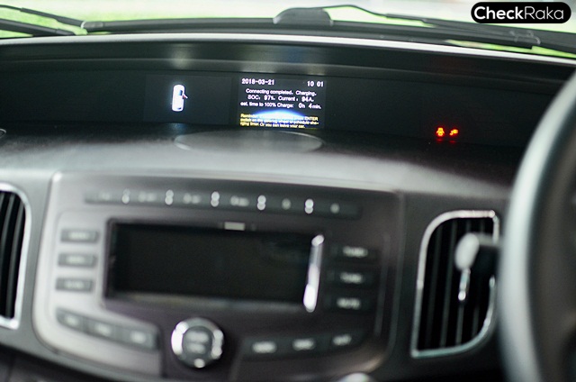ข้อมูลเพิ่มเติม - เมื่อเสียบสายชาร์จค้างไว้รถจะมีการเตือน และจะไม่สามารถใช้งานได้ และเมื่อมีการเสียบชาร์จระบบก็จะแสดงสถานะการชาร์จบนจอทันทีพร้อมบอกรายละเอียดระยะเวลา และปริมาณการชาร์จครบถ้วน