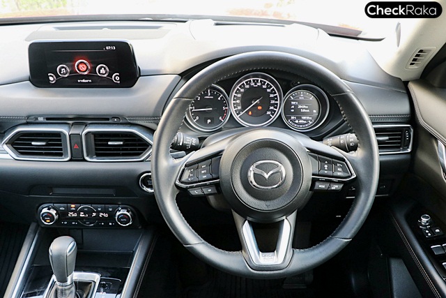 มาสด้า ซีเอ็กซ์-5 (Mazda CX-5) นอกจากความอเนกประสงค์แล้วยังให้ความรู้สึกดั่งขับรถเก๋งสปอร์ต เพราะเมื่อนั่งตำแหน่งคนขับ ด้วยดีไซน์ต่างๆ ภายในและระดับความสูงคอนโซลหน้า และจอภาพสะท้อนบนกระจก ทำให้เกิดความรู้สึกว่ากำลังขับรถเก๋งอยู่ รวมถึงระบบควบคุมต่างทั้งพวงมาลัยที่เฉียบคม บังคับทิศทางง่ายและเบา อัตราทดวงเลี้ยวน้อยยิ่งให้ความรู้สึกเหมือนขับรถคาร์ท แต่ทั้งนี้เมื่อความเร็วสูงๆ พวงมาลัยอาจเบาไปสักหน่อย