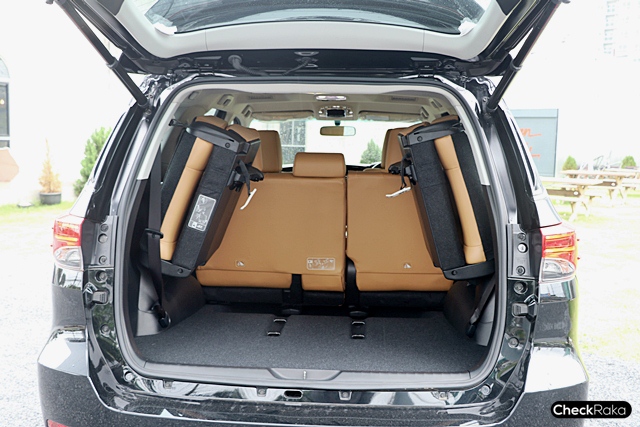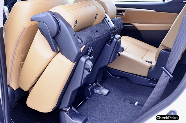 ในส่วนของเบาะนั่งแถวสามนั่งได้จริงไม่อึดอัด โดยสามารถปรับระยะเบาะแถวสองเลื่อนเดินหน้าหรือถอยหลังได้ตามสะดวก ยิ่งช่วยเพิ่มพื้นที่ส่วนวางขาของเบาะแถวสามได้มากขึ้น สะดวกสบายด้วยประตูท้ายเปิด-ปิดด้วยระบบไฟฟ้า สามารถสั่งการได้ที่รีโมทคอนโทรล พร้อมระบบป้องกันการหนีบ