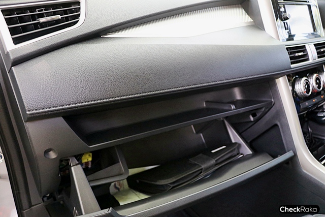 ระบบแอร์แบบสวิตช์มือหมุนถัดลงมามีจุดจ่ายไฟ DC12 V คอนโซลหน้าฝั่งคนนั่งตกแต่งลูกเล่นด้วยแผงลายเคฟล่าร์ คอนโซลกลางมีที่วางแก้วน้ำ 2 ตำแหน่ง และกล่องอเนกประสงค์แบบมีฝาปิดสไลด์ นอกจากนี้ใต้เบาะคนนั่งข้างคนขับมีถาดใส่รองเท้าอีกด้วย