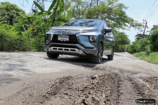 แม้สมรรถนะหรือความแรงอาจจะไม่โดดเด่น แต่ว่าเอ็กซ์แพนเดอร์ มีความสามารถในการ "ลุย" ได้ตามที่มิตซูบิชิเคลมไว้ว่ารุ่นนี้เป็นเหมือนรถครอสโอเวอร์ จึงสามารถขับผ่านเส้นทางที่มีอุปสรรคสูงได้ดีกว่ารถระดับเดียวกัน ด้วยระยะห่างใต้ท้องรถที่มีความถึง 205 มม. ใกล้เคียงรถปิคอัพรุ่นปกติเลยทีเดียว ดังนั้น แม้ว่ากำลังเครื่องยนต์จะไม่โดดเด่น แต่ได้เรื่องความลุยไปได้ทุกสภาพถนน โดยเฉพาะถนนในกรุงเทพฯ หรือว่าเมืองไทยในหลายๆ แห่ง ที่สามารถขับ "รูด" ได้โดยต้องกลัวติดใต้ท้องรถ (ความสูงของอุปกรรคต้องไม่สูงมากเกินไป โปรดใช้ความระมัดระวังในการลุย)