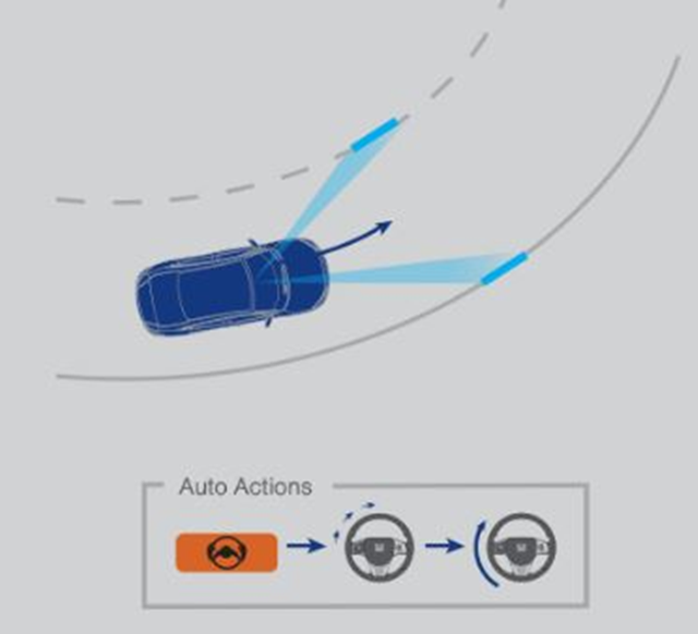 กล้องด้านหน้าจะทำการตรวจจับเส้นแบ่งช่องทางเดินรถ และระบบจะช่วยเพิ่มแรงหน่วงของพวงมาลัย เพื่อช่วยผู้ขับขี่ให้ควบคุมรถอยู่ภายในช่องทางปกติรวมทั้งช่วยลดอาการเหนื่อยล้าของผู้ขับขี่จากการขับขี่