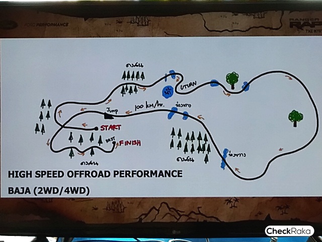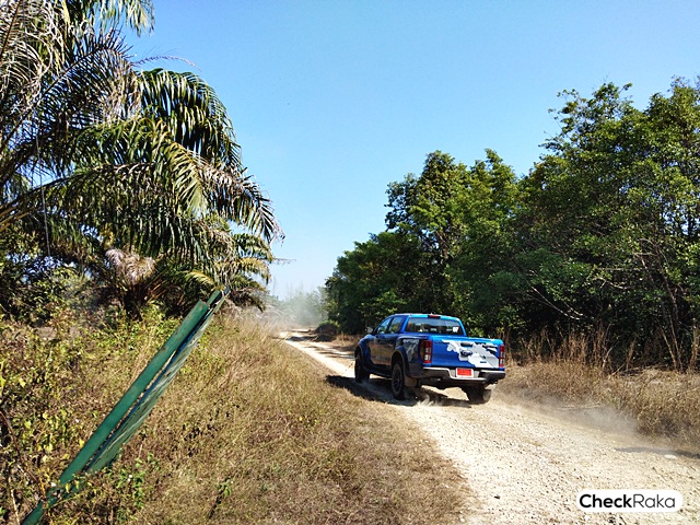 และแน่นอนว่าไม่พลาดที่จะ "บิน" เพื่อทดสอบการกระโดดและลงพื้น โดยทีมงานเช็คราคาได้มีโอกาสขับกระโดดเนินถึง 2 รอบ เพื่อจับความรู้สึกเยอะๆ เพราะการทดสอบนี้มีความปลอดภัยจากทีมงานฟอร์ดประเทศเป็นอย่างดี หากไม่ลองก็จะไม่มีโอกาสบินอีกแน่ๆ โดยในช่วงแรกจะเป็นขับในถนนดินแห้งๆ เกือบเป็นลูกรังใช้ความเร็วราวๆ 70 - 80 กม./ชม. เพื่อทดสอบระบบ BAJA ซึ่งแม้ผู้ขับจะไม่มีความชำนาญโดยตรงกับทางแบบนี้ก็ยังควบคุมรถได้อย่างง่ายดาย
