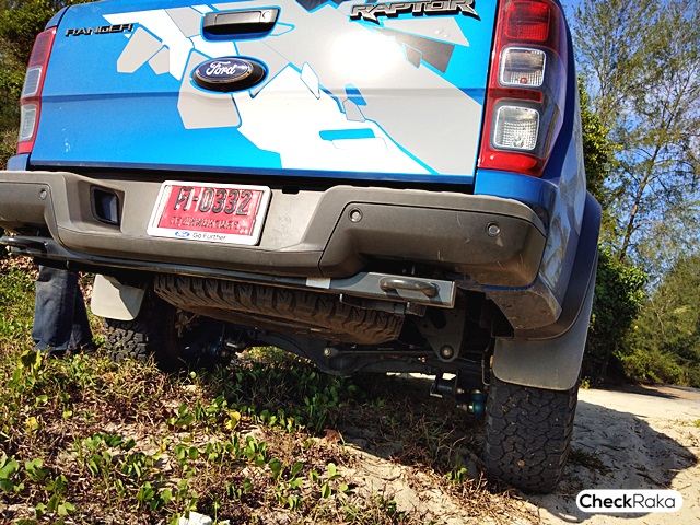 พร้อมโช้คอัพผลิตขึ้นมาเป็นพิเศษโดย Fox Racing Shox ใช้ลูกสูบขนาด 46.6 มิลลิเมตร หรือขนาด 2.5 นิ้ว เป็นอุปกรณ์มาตรฐาน เพิ่มระยะช่วงยุบมากขึ้นถึง 30% เมื่อเปรียบเทียบกับฟอร์ด เรนเจอร์รุ่นทั่วไป โหมดบาฮาจะลดการใช้ Traction Control และเพิ่มการการตอบสนองของเครื่องยนต์ และความฉับไวในการเปลี่ยนเกียร์ให้เหมาะสมกับสภาพถนน เพื่อการขับขี่ฟอร์ด เรนเจอร์ แร็พเตอร์ ให้เต็มศักยภาพที่สุด แถมด้วยยาง BFGoodrich All-Terrain 33 นิ้ว (All-terrain BF Goodrich 285/70 R17) แข็งแรงกว่ายางทั่วไปถึง 20%