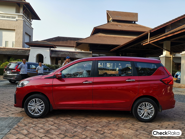 ภานนอกดูรวมๆ รอบๆ คัน ของรถยนต์ ซูซูกิ เออติกา 2019 ตัวรถจะมีฐานยาวกว่ารุ่นก่อนหน้าคือปี 2555 โดยยาวเพิ่ม 130 มม. และลดน้ำหนักรถลงถึง 50 ก.ก. เพื่อเพิ่มพื้นที่เก็บสัมภาระ และตัวรถให้มีน้ำหนักเบา เราเริ่มไล่จากกระจังหน้าใหม่ดีไซน์รับกับไฟแบบฮาโลเจ่น แยกไฟสูงไฟต่ำ แต่ไฟท้ายเป็น LED มีเส้นสายสวยงาม กระจกข้างพับได้พร้อมไฟเลี้ยวติดกระจกสองข้าง และหากใครที่สงสัยว่ารุ่นท็อปกับรองท็อปต่างกันตรงไหนสังเกตุง่ายๆ ที่ประตูด้ามจับ ตัวท็อปรุ่น GX ด้ามจับเป็นแบบโครเมี่ยม ส่วน GL ด้ามจับจะสีเดียวกับตัวรถ ล้อที่ให้มาเป็นอลูมิเนี่ยมขนาด 15 นิ้ว หน้าดิสเบรค หลังเป็นดรัมเบรค หลายคนอาจจะรู้สึกว่ายางเล็กกว่าตัวรถ แต่จริงๆ แล้วมันช่วยในเรื่องของการประหยัดน้ำมัน และเกาะถนนได้ดี