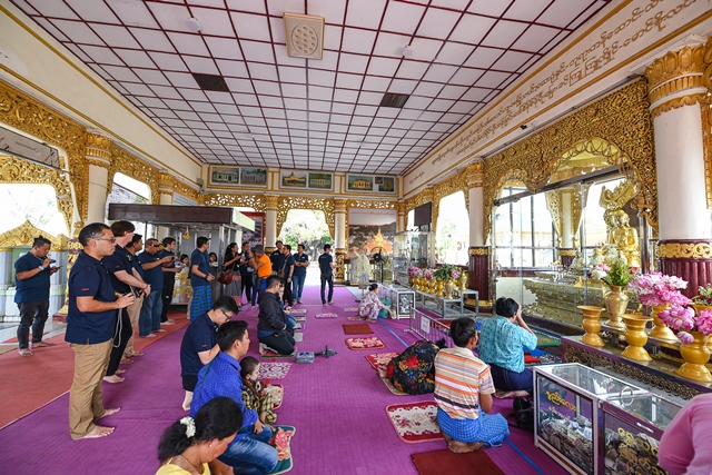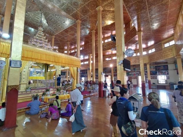 ต่อจากชมการจับปลา ก็นั่งเรือยาวๆ ไปไหว้พระที่มีประวัติความเป็นมาที่น่าอัศจรรย์ ณ วัดผ่องด่ออู่ ที่มีพระบัวเข็มอายุกว่า 1,000 ปี ตั้งแต่สมัยพุกาม โดยองค์พระทำจากไม้ แต่เดิมรูปทรงเป็นทรงพระพุทธรูปปกติ ด้วยการปิดทองคำเปลวเป็นระยะเวลานานมากๆ ทำให้รูปทรงเปลี่ยนไป (ดังรูป) ปัจจุบันห้ามปิดทองไปแล้ว