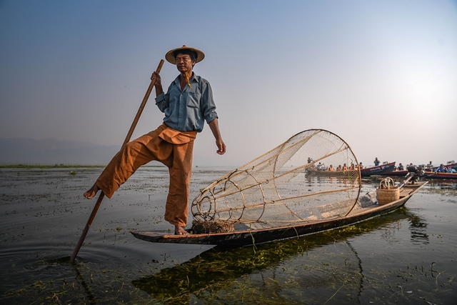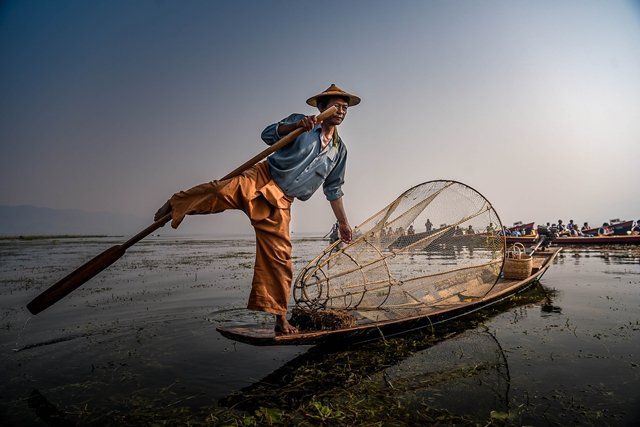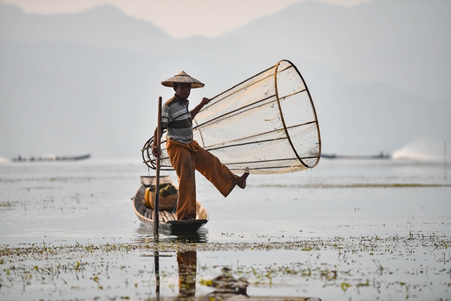ทะเลสาบอินเล อีกหนึ่งความ Unseen In เมียนมา อย่างที่บอกที่นี่มีชื่อเสียงในด้านการประมงที่แปลกที่สุด ทะเลสาบแห่งนี้อยู่ท่ามกลางหุบเขาที่สวยงามของรัฐฉาน อยู่ห่างจากเมืองตองยีประมาณ 25 กิโลเมตร การทำประมงในทะเลสาบ โดยเฉพาะวิธีการหาปลานั้น เรียกได้ว่าไม่มีชาวประมงที่ใดในโลกสามารถเลียนแบบได้