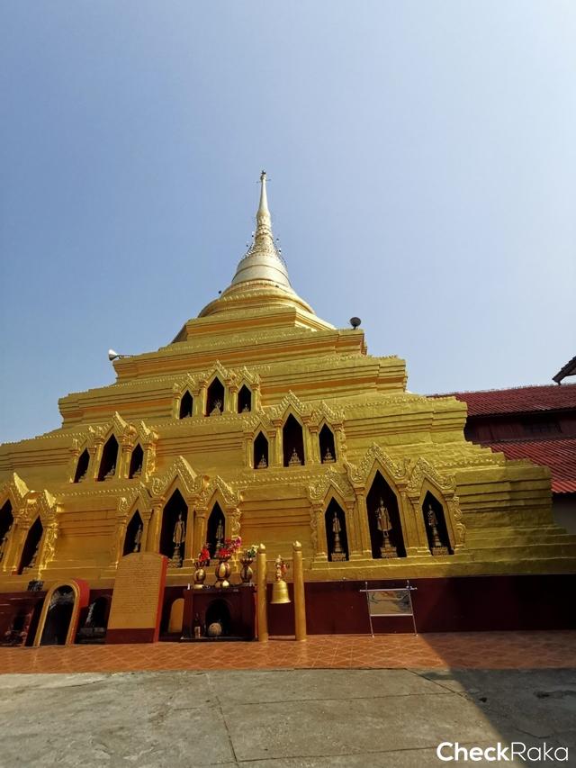 เป็นพระพุทธรูปศิลปะพม่า ถือเป็นจุดเด่นของเชียงตุงอีกแห่งหนึ่ง พระพุทธรูปยืนองค์ยักษ์ที่เปรียบเสมือนสัญลักษณ์เมืองเชียงตุง บริเวณฐานพระมีรูปปั้นแสดงพระพุทธประวัติและประวัติการนำพระบรมสารีริกธาตุของพระพุทธเจ้ามาประดิษฐานที่วัดแห่งนี้อีกด้วย (ขอบคุณข้อมูลจาก : bloggang.com)