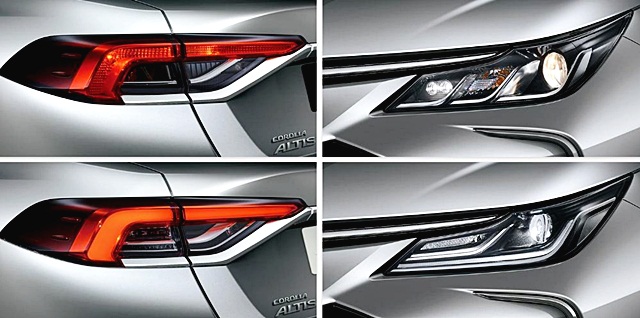 เริ่มที่ไฟหน้าใน อัลติส ตัวใหม่ ที่ดูเหมือนกัน คัมรี่ มากๆ แต่ลายในโคมไฟและชนิดของหลอดจะแตกต่างกันไปตามแต่ละรุ่นย่อย โดยที่ไฟหน้าโปรเจอเตอร์ฮาโลเจนน่าจะอยู่ในรุ่น 1.6 G และในรุ่น 1.8 GR Sport อาจเปลี่ยนเป็น LED เช่นเดียวกับ ESport ของรุ่นก่อนหน้านี้ และในรุ่นไฮบริดจะเป็นโปรเจคเตอร์ FULL LED แต่รุ่นย่อยลงมา เช่น 1.8 HV Entry อาจเป็นฮาโลเจน แบบเดียวกับใน C-HR ก็เป็นได้ ส่วนไฟ Day time Running light แบบ LED เป็นเส้นตามลวดลายของไฟในแต่ละรุ่น