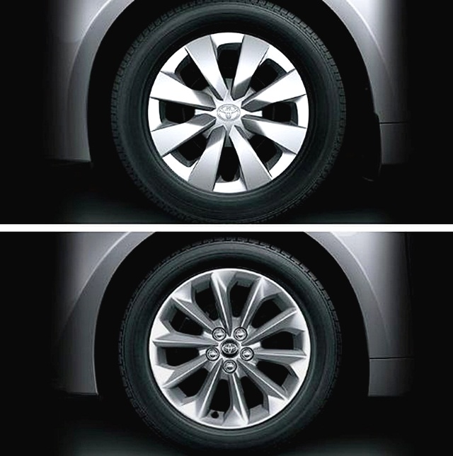 มาถึงลายของล้อแม็กอาจแตกต่างจากที่จะจำหน่ายในประเทศไทยในบ้างรุ่นย่อย เช่น 1.8 GR Sport นั้นอาจมีซิ่งล้อขนาด 18 นิ้ว ลายสวยๆ รออยู่เมื่อมาถึงไทย ส่วนล้อแม็กของแต่ละรุ่นย่อยคาดว่าจะใช้ 16 นิ้ว ในรุ่นไฮบริด แต่ต่างลายกันตามรุ่นย่อยรวมถึงรุ่น 1.6 G ด้วย สำหรับ 1.6 J MT (ถ้ามี) น่าจะใช้ล้อ 15 เช่นรุ่นเดิม