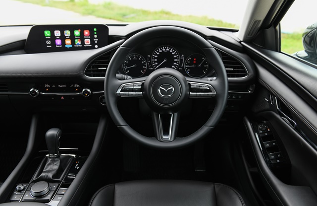 ภายในลูกเล่นเพียบแผงหน้าปัดและมาตรวัดดิจิตอลแบบ TFT LCD หน้าจอแสดงข้อมูลการขับขี่แบบสีบนกระจกหน้า ช่วยให้ผู้ขับขี่ไม่ต้องละสายตาจากถนน การเชื่อมต่อสื่อสารแบบไร้ขีดจำกัดด้วย Mazda Connect ที่มาพร้อม Apple CarPlay โดยแสดงข้อมูลผ่านหน้าจอสี Center Display แบบ Widescreen ขนาด 8.8 นิ้ว ควบคุมด้วยปุ่มควบคุมอัจฉริยะ Center Commander โดยผู้ขับขี่ไม่ต้องละสายตาจากถนน ห้องโดยสารที่เงียบขึ้น และระบบเสียงคุณภาพ Bose รอบทิศทาง พร้อมลำโพง 12 ตำแหน่ง