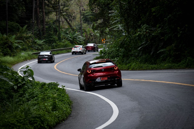 ในการทดสอบขับครั้งนี้ได้ลองเพียงในรุ่น SP ในตัวถัง "ฟาสต์แบ็ก" ที่ทางมาสด้าใช้เรียกเป็นทางการ หรือเราๆ เรียกกันว่า "แฮตช์แบ็ก" เท่านั้นเพราะด้วยข้อจำกัดของเวลาในการทดสอบ จึงยังไม่ถึงกับรู้ลึกมากนักเกี่ยวระบบช่วยเหลือการขับขี่ที่มีมาให้นั้นเยอะมากมายเหลือเกินเพราะว่าเส้นทางส่วนมากเป็นทางยาวๆ มีขึ้นเขาสลับโค้งไปมาตลอดทางและเป็นถนนที่รถใช้งานกันโดยทั่วไป จึงขับขี่ในลักษณะปกติ มีในบางช่วงที่อาจใช้ทดสอบอัตราเร่ง การเร่งแซงอยู่บ้างครับ ด้วยสื่อมวลชนจำนวน 30 คนและรถที่มีเพียง 12 คัน โดยรวมแล้วก็ได้ขับกันจริงๆ นั้นจากระยะทางทั้งหมดไป-กลับ ภูเก็ต-พังงา 200 กว่ากิโลเมตร แต่มีการสลับกันขับขี่ 3 คนต่อ 1 คัน จึงได้ขับจริงๆ แค่ 60 - 70 กิโลเมตรต่อคนเท่านั้น แต่ก็ได้ลองนั่งในทุกตำแหน่งนับว่าสามารถมาเล่าสู่กันฟังได้ครับ