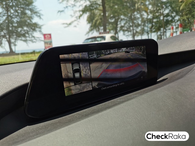 มาถึงระบบความปลอดภัยที่เพิ่มมาจากมาสด้า3 รุ่นเดิมคือ ช่วยบังคับทิศทางตามรถคันหน้า.. อันนี้ไม่มีโอกาสองเพราะวิ่งเกินความเร็วที่ระบบทำงานได้ (30-60กม./ชม.) และกล้องรอบคัน 360 องศามีตั้งแต่รุ่นเดิม แต่มาเพิ่มระบบเตือนและเบรกอัตโนมัติเมื่อมีสิ่งกีดขวางในขณะถอยหลังและในมุมอับสายที่คนขับมองไม่เห็น อันนี้ดีงามครับ