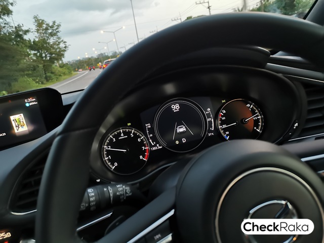 All new Mazda3 ใหม่ หลังจากการได้ลองในทุกตำแหน่ง ทั้งนั่งข้างคนขับ นั่งเบาะหลัง และขับ.! เริ่มจากขับก่อนเลย ต้องยอมรับว่า.. ท่านั่งขับเน้นสปอร์ตมาก ทั้งพวงมาลัย ระดับเบาะนั่งที่เมื่อวางเท้าแล้วจะค่อนข้างเหยียดตรง.. ทำให้ควบคุมคันเร่งและเบรกได้สะดวก