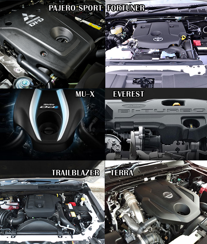 สำหรับขุมพลังรถยนต์ประเภทนี้มาแต่ละคันนั้นจัดเต็ม ทั้งแรงม้า และแรงบิด ระบบเกียร์ที่ทันสมัย และระบบขับเคลื่อ 4 ล้อซึ่งแต่ละรุ่นก็มีจุดเด่นแตกต่างกันไปอีกด้วย
