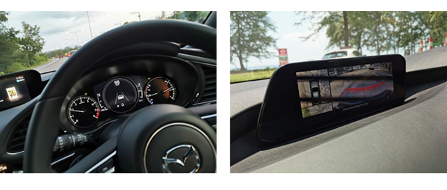 ดีไซน์ภายใน: สำหรับภายใน Mazda3 กับออพชั่นความทันสมัย แฝงเทคโนโลยีสุดล้ำ แผงหน้าปัดและมาตรวัดดิจิตอลแบบ TFT LCD หน้าจอแสดงข้อมูลการขับขี่แบบสีบนกระจกหน้า การเชื่อมต่อสื่อสารแบบไร้ขีดจำกัดด้วย Mazda Connect ที่มาพร้อม Apple CarPlay จอ Widescreen ขนาด 8.8 นิ้ว ควบคุมด้วยปุ่มควบคุมอัจฉริยะ Center Commander