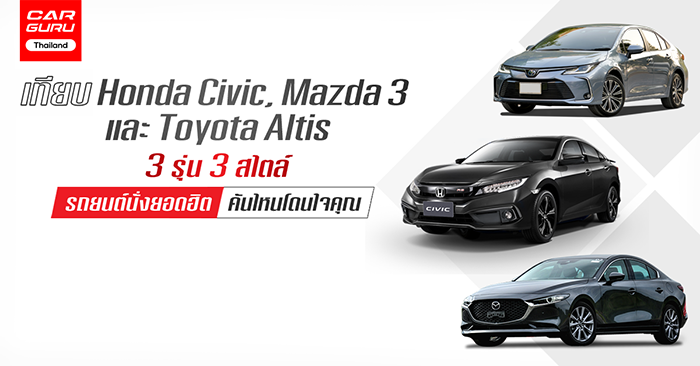 รีวิว เปรียบเทียบ Honda Civic, Mazda 3 และ Toyota Altis 3 รถยนต์นั่งยอดฮิต คันไหนโดนใจคุณ!