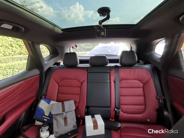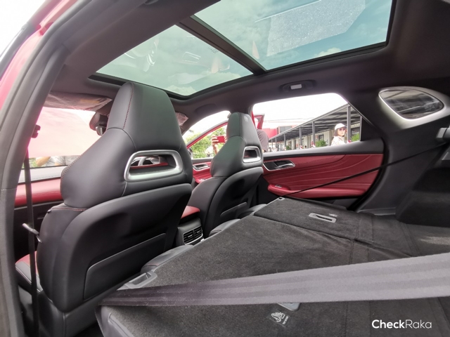 นอกจากภายนอกทั้งดู หรูหรา สวยงาม เฉกเช่น SUV ระดับลักชูรี่แล้ว อีก 1 จุดที่เรียกความสนใจนั่นคือห้องโดยสารที่กว้างขวางนั่งสบาย สะอาดตา และดูไฮ ด้วยการใช้วัสดุแบบ Soft Touch พร้อมเบาะแบบ Sport ดำตัดสีแดงเด่น โค้งมนรับสรีระคนขับได้ดี เบาะนั่งคู่หน้าปรับอัติโนมัติด้วยไฟฟ้าแบบ Bucket Seat และใช้วัสดุหุ้มด้วย Alcantara (เฉพาะรุ่น X) และเบาะหลังสามารถปรับและพับได้ 60:40 เข็มขัดนิรภัย 3 จุด พนักพิงปรับองศาได้ มีที่วางแขน นั่งสบายซ้อน 3 ไม่อึดอัด และยังมีหลังคาซันรูฟเปิดได้ยาวสุด 1.1 ตารางเมตร