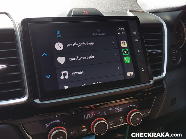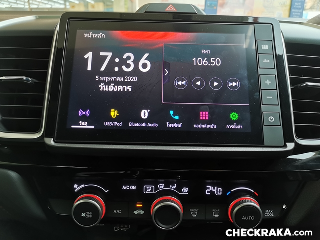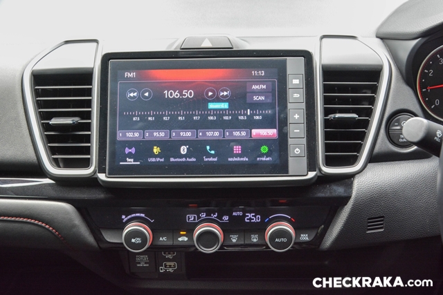 Honda City RS ให้ความสะดวกสบายด้วยกุญแจสมาร์ทคีย์แตะมือจับก็ปลดล็อคทันที สวิตช์สตาร์ทเครื่องยนต์ แอร์อัตโนมัติ จอสัมผัส 8 นิ้ว รองรับ