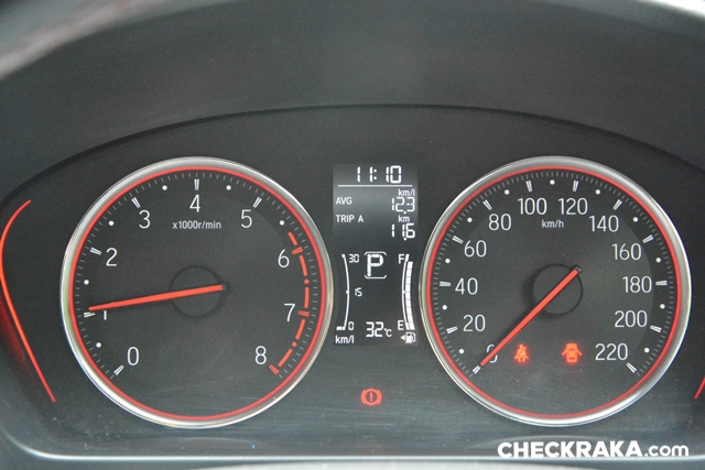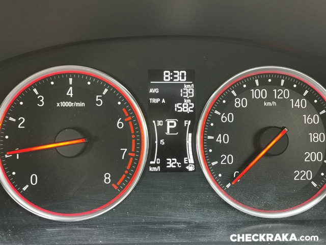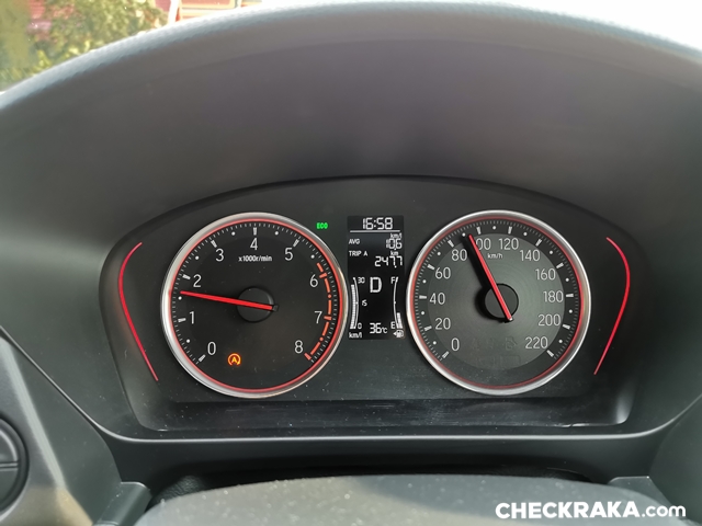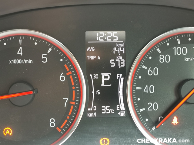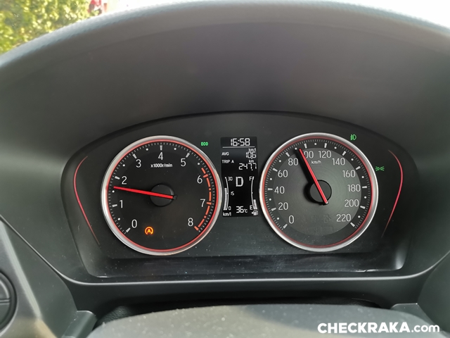แต่ในการถ่ายรีวิวครั้งนี้มีช่วงที่จอดแช่ติดเครื่องยนต์เอาไว้นานเกิน 30 นาที ตัวเลขลงมาที่ และเนื่องจากความจุถังเพียง 40 ลิตร จึงทำให้ระดับเข็มน้ำมันลดลงเร็วตามไปด้วย แม้จะอัตราสิ้นเปลืองไม่มากแต่มีน้อย จึงไม่ต้องตกใจว่าทำไมระดับน้ำมันลดลงเร็วโดยเฉพาะหาก "ซัด" เพิ่มความสนุกด้วยการ "คิกดาวน์" บ่อย ๆ น้ำมันลดลงเร็วขึ้น แต่ว่าเติมคืนไม่กี่ร้อยก็กลับสู่สภาวะปกติแล้วครับ