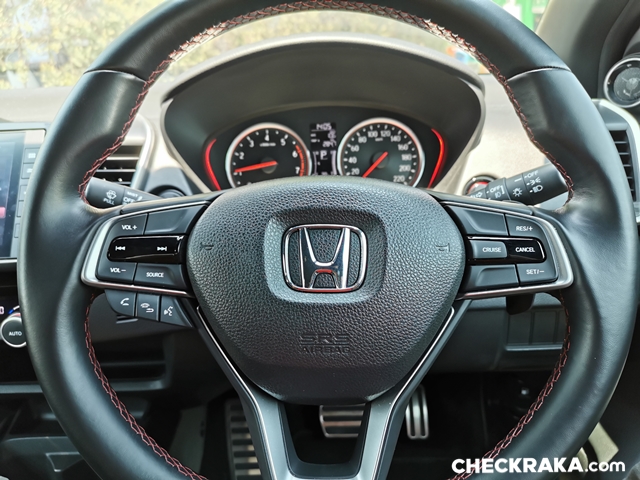 พวงมาลัยทรงเดียวกับในแอคคอร์ดใหม่ หุ้มหนังเดินด้านแดง